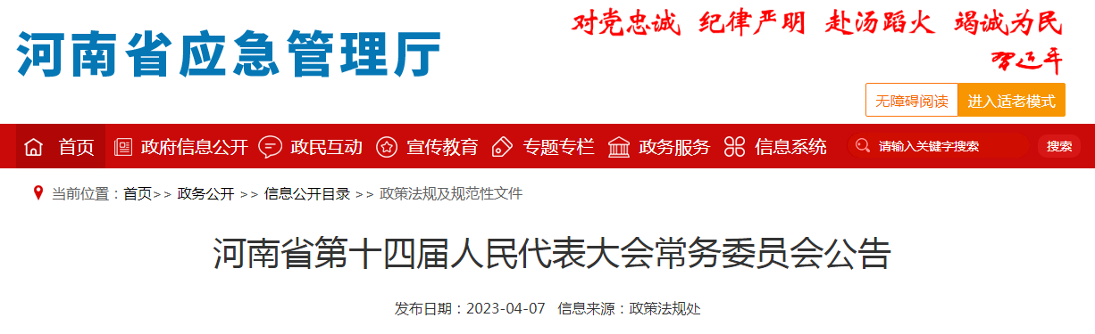 《河南省人民代表大會(huì)常務(wù)委員會(huì)關(guān)于修改〈河南省安全生產(chǎn)條例〉的決定》已經(jīng)河南省第十四屆人民代表大會(huì)常務(wù)委員會(huì)第二次會(huì)議于2023年3月29日審議通過(guò),現(xiàn)予公布,自公布之日起施行。